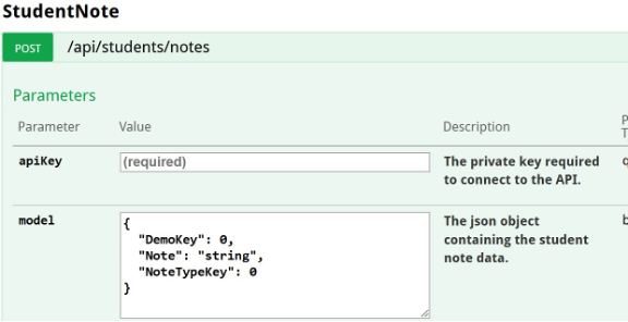 - Added a new Student Notes endpoint to allow creation of student notes from external systems. The API can be browsed at https://portal.COLLEGENAMEHERE.edu/Portal/apidocs.